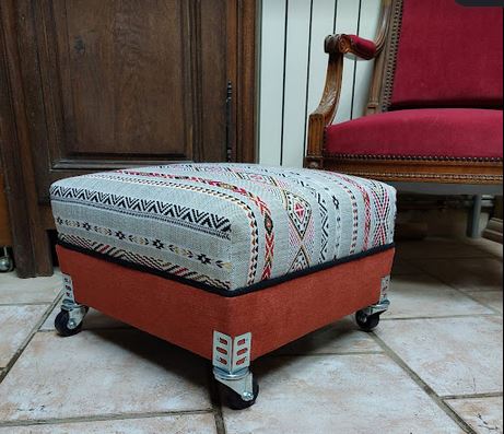 Pouf/Repose pieds Crin, sur roulette, collection ethnique